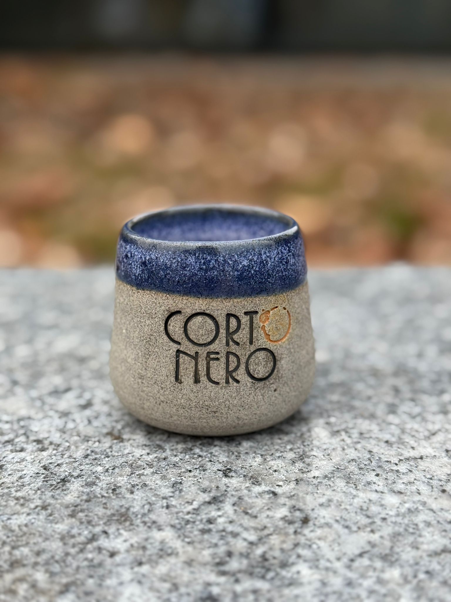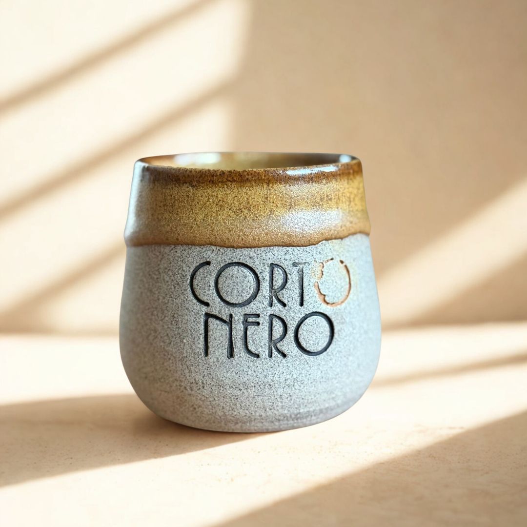 Ręcznie wykonany ceramiczny kubeczek idealny na kawę, wyróżniający się unikatowym designem i powstały w małej pracowni ceramicznej Trzy Wiatry.